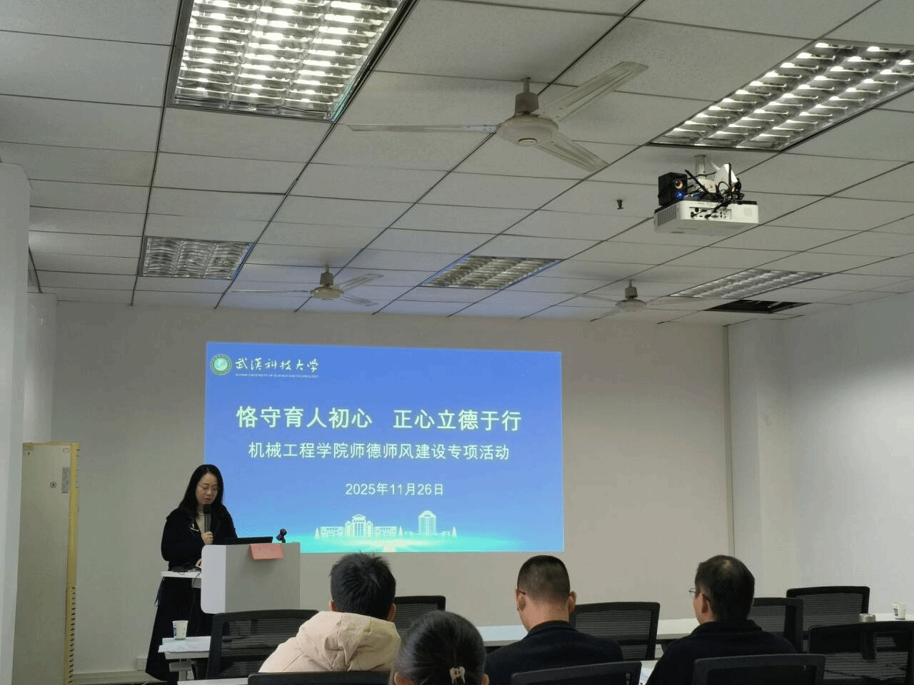 活动第一阶段,特邀教育部课程思政名师团队负责人、“荆楚好老师”、湖北省 “师德先进个人”、“新华思政” 专家、武汉理工大学廖红教授作专题报告。廖红教授围绕“智创未来 学为中心”的核心理念,深入阐释优良师德师风的涵养路径:强调教育教学创新需聚焦学生学习过程中的“真实问题”,精准对接数智时代新质人才培养需求,推动知识传授、能力培养与价值引领深度融合,在教学相长中厚植师德根基、涵养高尚师风。
