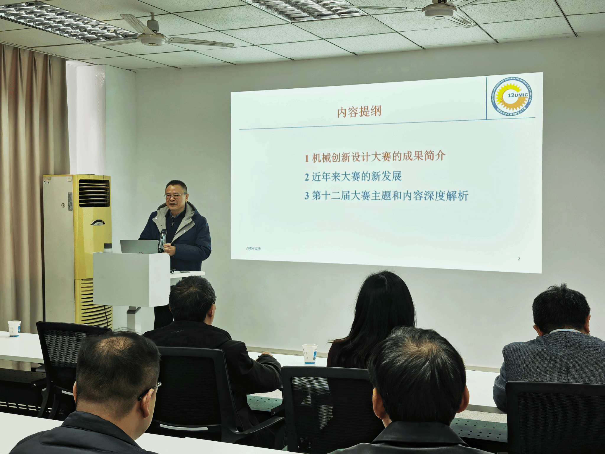 报告伊始,王晶教授系统回顾了全国大学生机械创新设计大赛的发展历程与丰硕成果,重点介绍了近年来大赛在赛制创新、评审标准优化、项目导向深化等方面的最新发展。随后,他围绕第十二届大赛“自然·和谐”主题,结合“水产品初加工机械”“叶菜洁净化处理包装一体化机械”“高性能仿生蝴蝶”三大选题方向,从设计要求、技术难点、创新路径、评审标准等维度进行了深入解读。在后续的项目展示与交流环节,开云官方网页版官网三支备赛团队依次进行了阶段性成果汇报。王晶教授针对各团队实际情况,从处理效率提升、关键技术突破、仿生原理深化等方面进行了逐一点评,并提出了具体可行的优化建议。