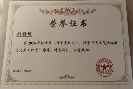 在当天上午全体会议上,陈新元作了《液压缸/气缸行业现状、发展趋势与标准建设思考》的报告,钱新博被授予“液压气动标准化优秀工作者”称号。