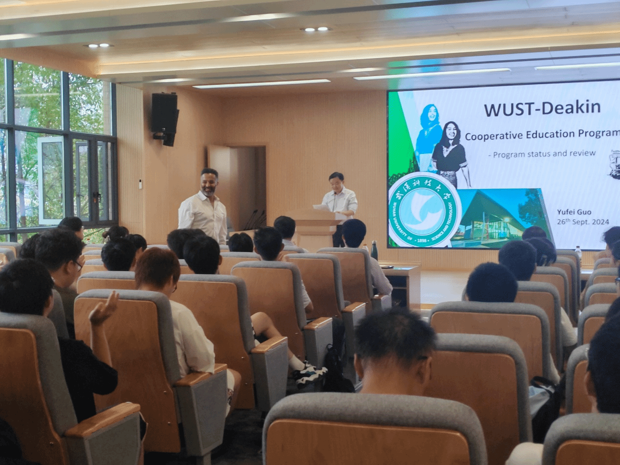 迪肯大学工程学院王亚楠副院长向机械工程国际班2023级学生介绍了迪肯大学的基本情况及国际学生支持服务,宣讲了迪肯大学对于转学、攻读研究生学位的最新政策,鼓励大家刻苦钻研,谱写人生新的篇章。